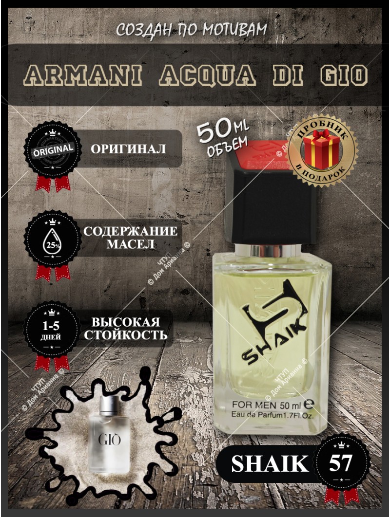 Парфюмерия Shaik обогащена эфирными маслами, благодаря чему имеют стойкость аромата до 48 часов. Яркие брызги цитрусовых - благородного бергамота, радостного апельсина, будоражащего лайма, страстного мандарина сплетаются в невероятную, фееричную композицию с томными нотами жасмина. пряные оттенки кориандра и мускатного ореха, которые так притягивают предвкушением неги, отражаются в теплом привкусе персика, свежести фрезии, утонченности цикламена и томности гиацинта. Аромату Armani Acqua Di Gio отдала всю свою нежность роза, а фиалка, скромность. Ярчайшие оттенки страсти, притягательности завуалированы прохладой морского ветра, уносящего все ощущения в будущее, которое там, за морем, ждет своего победителя. Оно манит к себе обещанием нежной чувственности, сладости встречи, опьяняет нотами амбры, мускуса, завораживает терпкой вуалью мшистых оттенков и смолистой мягкостью пачули. Ароматы относятся к духам и обогащены эфирными маслами. Конкурентное окружение: Giorgio Armani Acqua di Gio