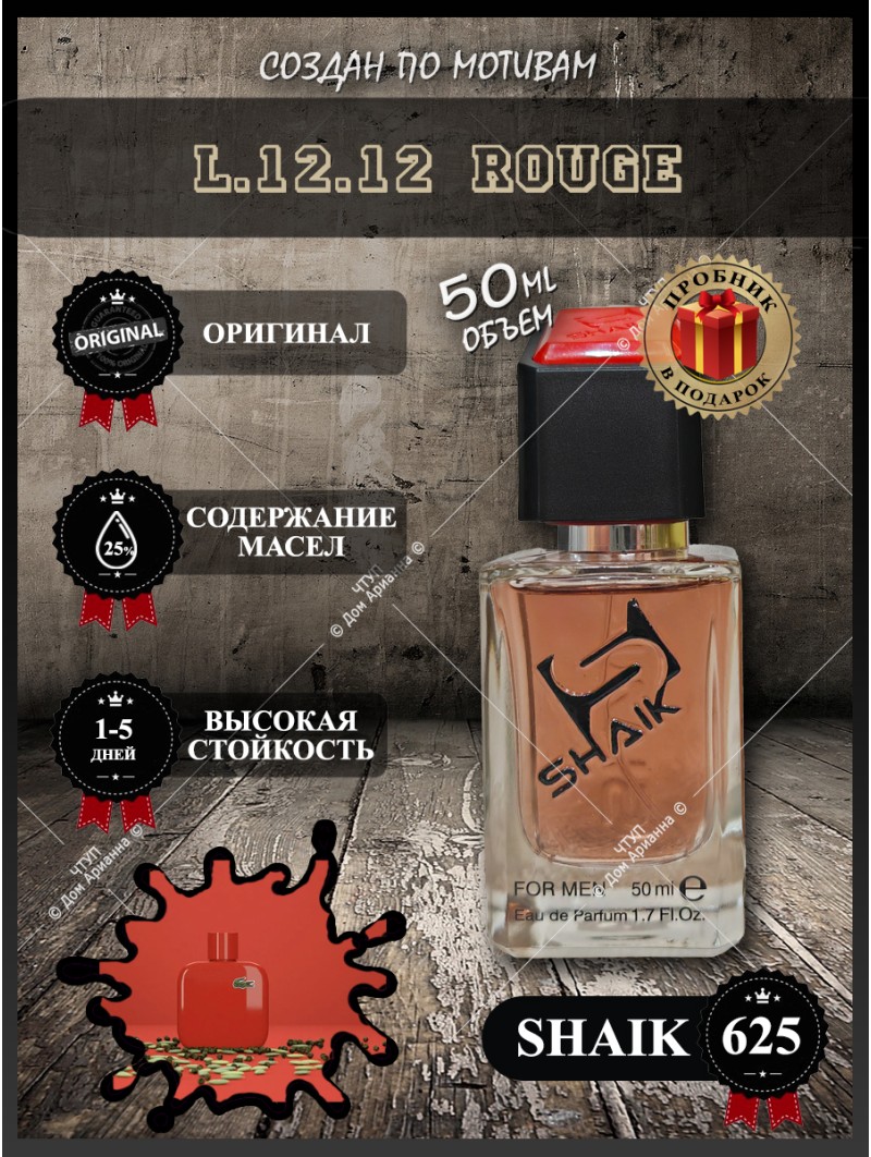 Парфюмерия Shaik обогащена эфирными маслами, благодаря чему имеют стойкость аромата до 48 часов. Особенность ароматического шедевра под названием Lacoste Eau De Lacoste L.12.12 Rouge состоит в особом магнетизме его составляющих, комплексно влияющих на мироощущение мужчины в целом. Сначала представитель сильного пола может насладиться волной свежих эмоций и волнующих перспектив под впечатлением от цитрусового микса, царствующего в начальных нотках парфюма. После ошеломляющей энергетической волны действие композиции для настоящих мужчин становиться более сдержанным и размеренным, однако оно не теряет своего напора, ведь в аромате до сих пор ощущается присутствие пряных мотивов. И лишь аристократический шлейф композиции, основанный на самобытности благородных древесных компонентов, в полной мере дополняет букет неповторимого парфюмерного коктейля Lacoste Eau De Lacoste L.12.12 Rouge. Ароматы относятся к духам и обогащены эфирными маслами. Конкурентное окружение: Lacoste L.12.12 Rouge.