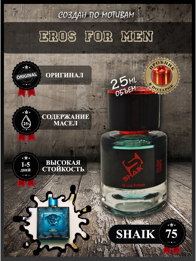 Парфюмерия Shaik обогащена эфирными маслами, благодаря чему имеют стойкость аромата до 48 часов. Ноты эротизма, экзотичности и уникальной чувственности обвивают обладателя букета. Лаконичный и стильный букет не оставляет чувства недосказанности, напротив, идеальное сочетание строгости и независимости, пикантности и динамики представлено в нотах аромата. Фужерный аромат сверкает невинной свежестью мяты, пикантностью искристого лимона и сочной сладость яблока в начальных нотах. Цветочное сердце собрано из медовой сладости бобов Тонка и уникальной нежности герани, которая потрясающим образом притягивает женщин. Ноты восхитительной амбра и древесные аккорды достойно завершают сексуальный коктейль для настоящих мужчин. Ароматы относятся к духам и обогащены эфирными маслами. Конкурентное окружение Versace Eros For Men