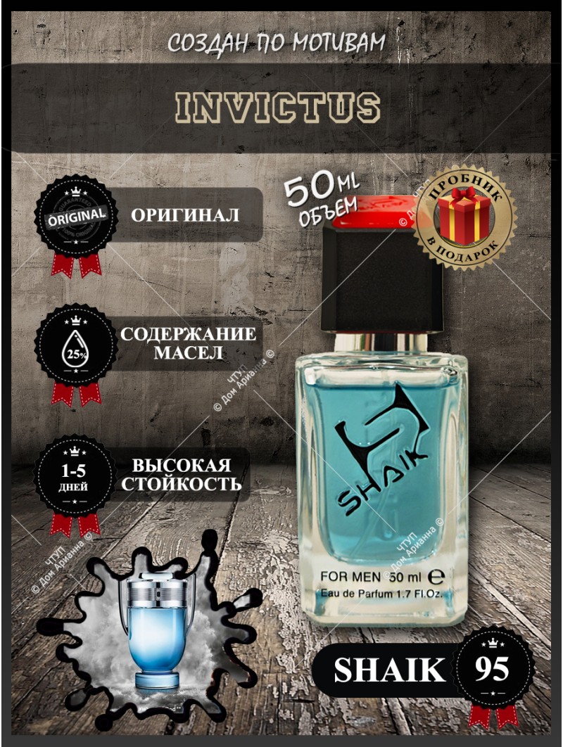 Ищете парфюм, который станет вашим талисманом уверенности и зарядит духом победителя? Туалетная вода Shaik 95 — это выбор для мужчин, чья жизнь полна движения, амбиций и ярких побед. Вдохновленный культовым ароматом, завоевавшим мировую популярность, этот парфюм сочетает в себе бодрящую морскую свежесть и теплую древесную чувственность. Его невероятная стойкость и заряжающая энергия делают его идеальным спутником в любой ситуации. В нашем каталоге духов вы можете купить духи Shaik 95 Invictus, чтобы заказать духи онлайн и получить заряд непобедимости. Специальные предложения, такие как духи со скидкой во время распродажи, делают покупку этого популярного парфюма еще приятнее. Это отличный вариант духов в подарок мужчине на день рождения, Новый год или праздник, связанный с достижениями.