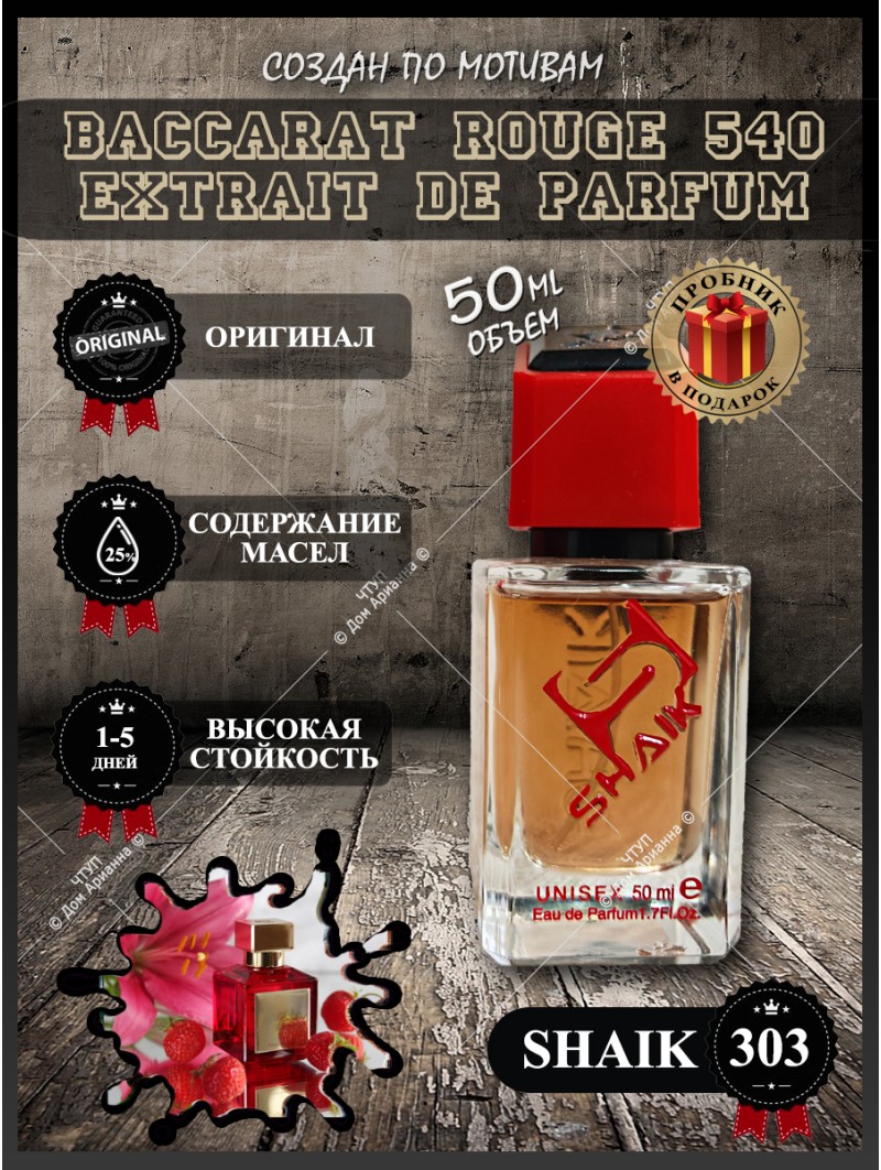 В мире парфюмерии есть ароматы, которые пахнут красиво, и есть те, что пахнут дорого. Шейк 303 — это абсолютный эталон второй категории. Эта туалетная вода — не просто запах, а парфюмерный эквивалент хрусталя: прозрачный, звонкий, бесконечно драгоценный. Баккара Руж 540 Красный — это аромат, созданный в честь 250-летия хрустальной мануфактуры, и он звучит соответственно: как люстра, в которой преломляется свет.