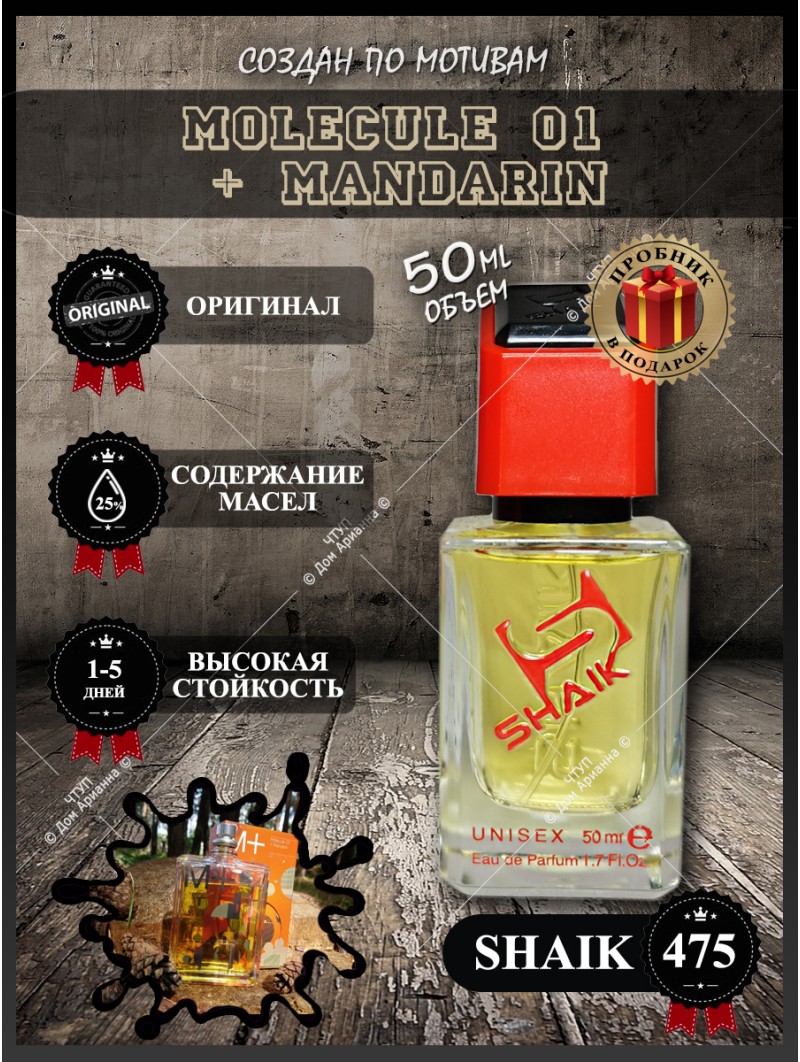 Парфюмерия Shaik обогащена эфирными маслами, благодаря чему имеют стойкость аромата до 48 часов. Легкий и изящный цитрусовый парфюм Escentric Molecules Molecule 01 + Mandarin кажется настолько хрупким и живым, что создается впечатление, будто его сияние обволакивает кожу невидимой аурой первозданной чистоты и придает ей бархатистой мягкости. Некоторые могут подумать, что перед нами лишь один из классических цитрусовых одеколонов, однако, это совершенно не так, в нем нет той привычной мыльности и простоты. Кроме классических цитрусовых запахов мандариновых веток в аромате угадываются влажные оттенки намокшей от дождя древесины. Характер парфюма Escentric Molecules Molecule 01 + Mandarin можно описать, как фужерный, но и это сравнение будет неполным, поэтому подобные запахи нужно лишь пропустить сквозь себя, прочувствовав каждый аккорд. Ароматы относятся к духам и обогащены эфирными маслами. Конкурентное окружение: Escentric Molecules Molecule 01 + Mandarin