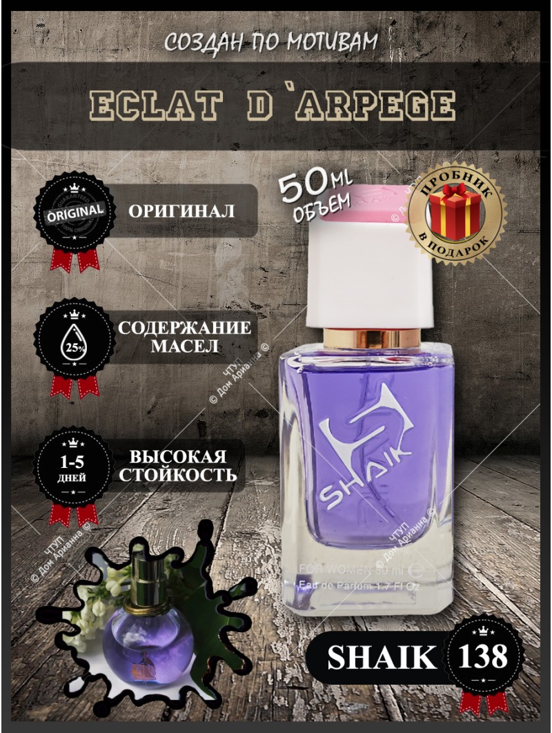 Аромат Shaik 138 — это популярный выбор среди тех, кто ценит в парфюмерии нежность, стойкость и элегантность. Данная туалетная вода представляет собой интерпретацию известного парфюма и относится к категории женственных, цветочно-фруктовых композиций. Парфюмерия Shaik известна своей стойкостью, а сами духи обогащены эфирными маслами, что обеспечивает насыщенное звучание на долгие часы, по некоторым оценкам, до 48 часов . Если вы ищете в интернет-магазине легкий и универсальный аромат, этот вариант заслуживает вашего внимания.