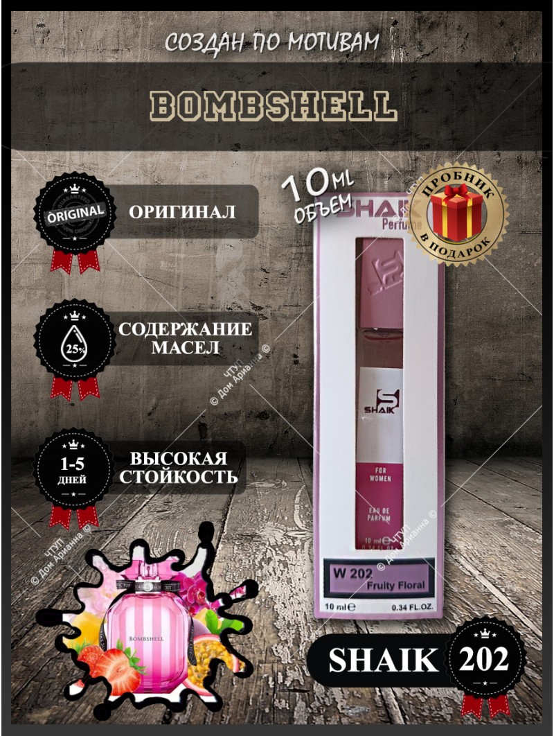 Парфюмерия Shaik обогащена эфирными маслами, благодаря чему имеют стойкость аромата до 48 часов. Bombshell Seduction мягко и обходительно приступает к искушению с начальных нот пряности и терпкости травяного шалфея. В сердце композиции царствует изысканная пьянящая тубероза, которая получает весомое подкрепление и поддержку в базовых нотах при помощи эротической силы благоуханного мускуса. Аромат вкрадчиво льнет к женской коже и исподволь творит настоящее чудо – волшебную ауру элегантности и привлекательности. Этот парфюм подчеркнет в любой представительнице прекрасного пола лучшее и завуалирует то, что не стоит демонстрировать. Подходит для использования вечером в любой сезон. Ароматы относятся к духам и обогащены эфирными маслами.Конкурентное окружение Victoria's Secret Bombshell.