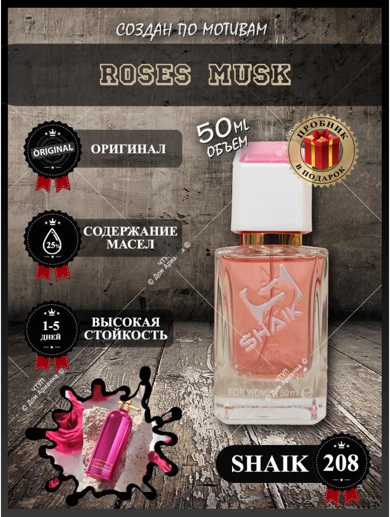 Парфюм Shaik 208 — это изысканная туалетная вода, которая представляет собой точную интерпретацию популярного аромата Roses Musk. Этот парфюм создан для современных женщин, ценящих в парфюмерии сочетание цветочной нежности и чувственной стойкости. Наш интернет магазин предлагает вам купить этот популярный парфюм, который станет идеальным выбором как для повседневного использования, так и для особых случаев. Если вы ищете духи в подарок женщине или хотите пополнить личную коллекцию, наш каталог духов предоставляет такую возможность.