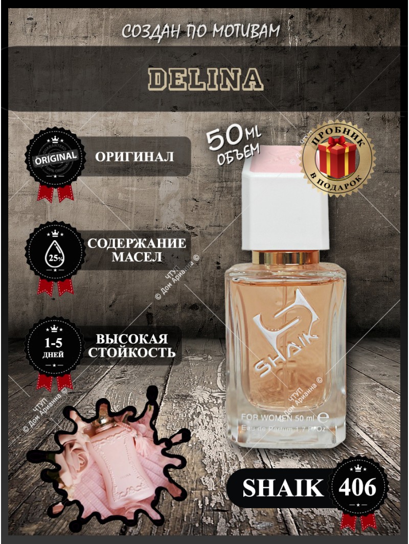 В мире изысканной парфюмерии каждый аромат рассказывает свою историю. Shaik 406 представляет собой впечатляющую интерпретацию знаменитого цветочного парфюма, воплощающего современную женственность, чувственность и утонченную роскошь. Этот парфюм, известный под именем Delina (Дэлина), создан для женщин, которые не боятся быть в центре внимания и ценят безупречный вкус. В нашем интернет-магазине вы можете купить эту восхитительную туалетную воду в формате долговечных масляных духов. Исследуйте наш обширный каталог духов, чтобы заказать духи онлайн и найти свой идеальный акцент для повседневности или особого праздника.