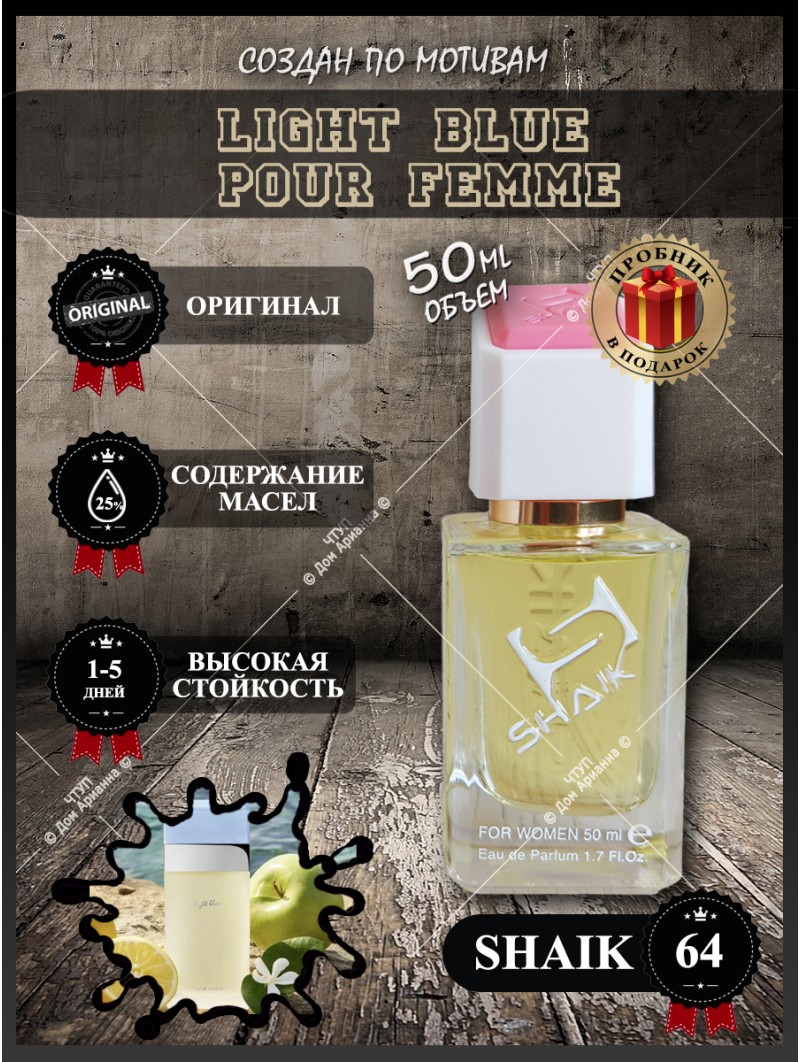 Аромат Shaik 64 — это популярный женский парфюм, который представляет собой интерпретацию известной туалетной воды. Этот парфюм относится к категории масляных духов, обогащенных эфирными маслами, что обеспечивает ему высокую стойкость и насыщенное звучание на протяжении длительного времени. Если вы ищете в интернет-магазине свежий и энергичный аромат, этот вариант заслуживает вашего внимания.