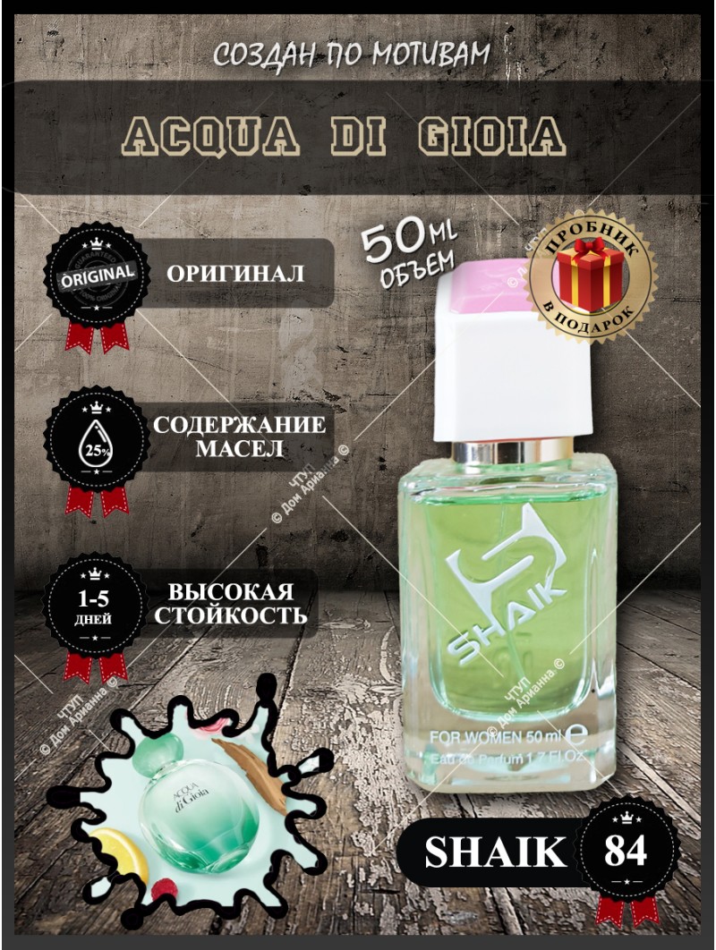 Аромат Shaik 84 — это популярный женский парфюм, который представляет собой интерпретацию известной туалетной воды. Данный парфюм относится к категории масляных духов, обогащенных эфирными маслами, что обеспечивает ему высочайшую стойкость и насыщенное звучание на протяжении до 48 часов на коже, а на одежде — до стирки. Если вы ищете в интернет-магазине свежий и многогранный аромат, этот вариант заслуживает вашего внимания.